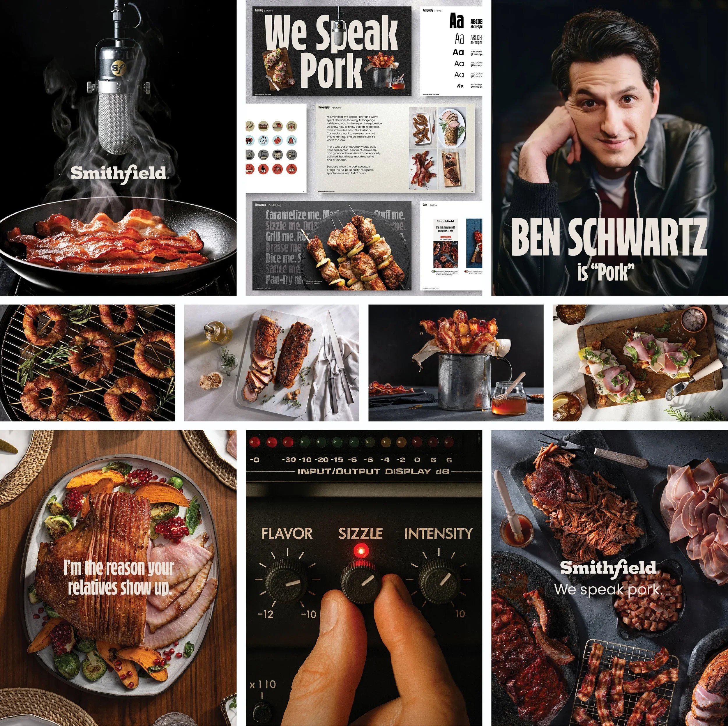 To launch the first campaign in Smithfield’s We Speak Pork platform, we produced a high-volume shoot featuring Ben Schwartz as the voice of pork. Over two production days, 77 total generated assets were captured on set, including 7 broadcast and OLV spots and a full photography campaign. The production ran across two simultaneous studios - Studio A captured all broadcast and video content, while Studio B photographed the stills that would later roll out across OOH, POS, social, digital banners, and web assets. The newly installed LED volume wall at the studio became a powerful tool, allowing us to cycle through six unique kitchen environments instantly—eliminating company moves and traditional set builds.
